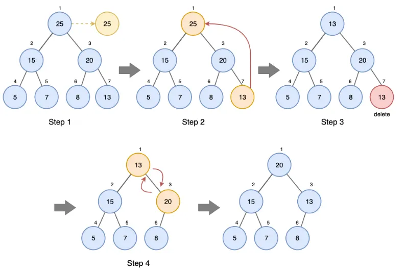 힙 속성이 유지될 때까지 1,2번 과정을 반복
