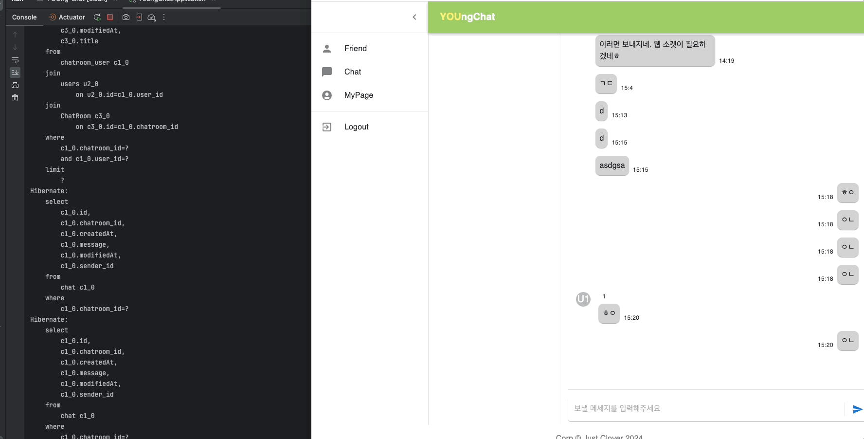 현재 개발 테스트 단계에 있어서 여러 채팅을 보내는 테스트를 하고 있어서 벌써 약 640개가 쌓여 있는 것을 확인할 수 있다.