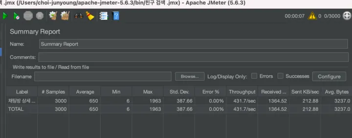 성능 테스트는 JMeter를 이용해 사용자를 추가해 비교하는 방식으로 진행