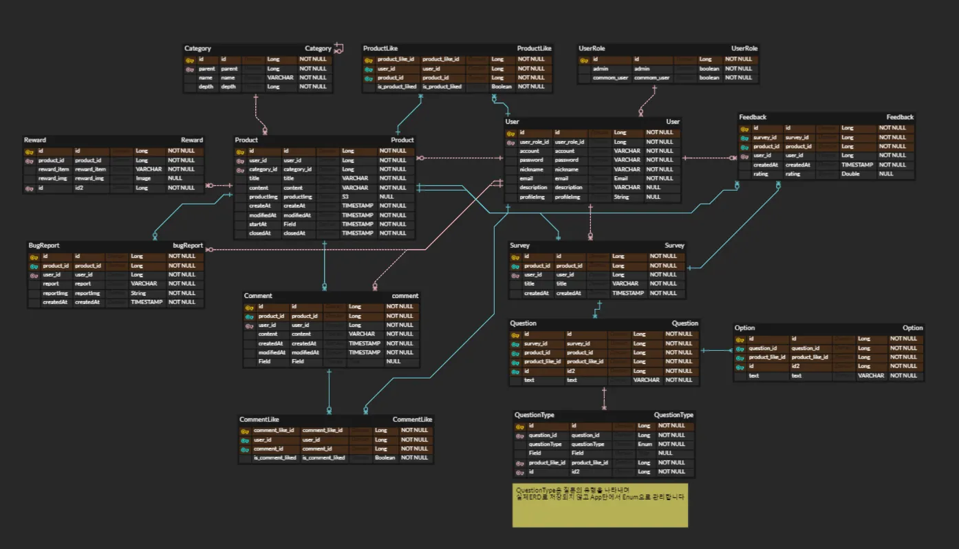 클라이언트는 피드백을 설문 형식으로 만들어서 자신이 원하는 피드백(객관식, 주관식)을 받을 수 있게끔 질문을 설정할 수 있습니다. 또한, 버그리포트로 유저들에게 예기치 못한 버그를 제보 받을 수 있게 했습니다.