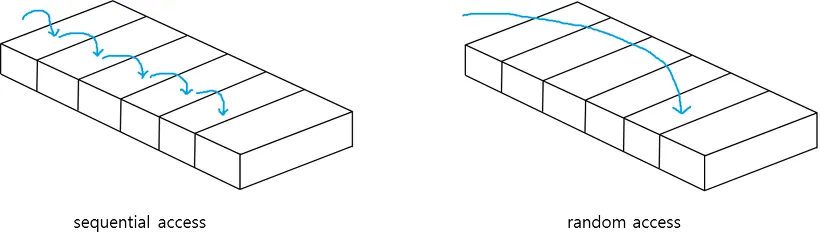 직접 접근이라고 하는 랜덤 접근은 동일한 시간에 배열과 같은 순차적인 데이터가 있을 때 임의의 인덱스에 해당하는 데이터에 접근할수 있는 기능이다.