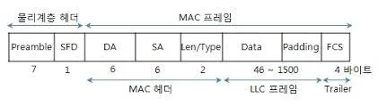 프리앰블(Preamble) : 프레임 시작을 알리는 동기화 비트 패턴으로, 수신 측에서 프레임의 시작을 인식할 수 있게 합니다.