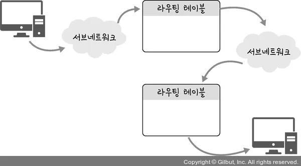 각 라우터에서 패킷의 경로를 결정하는 과정이 필요