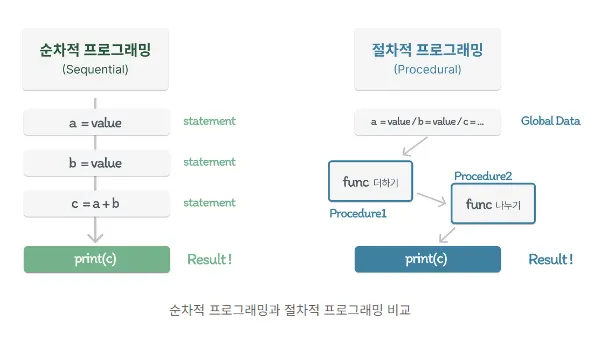 말 그대로, 순차적으로 위에서 아래로 흘러가는 프로그래밍 구조