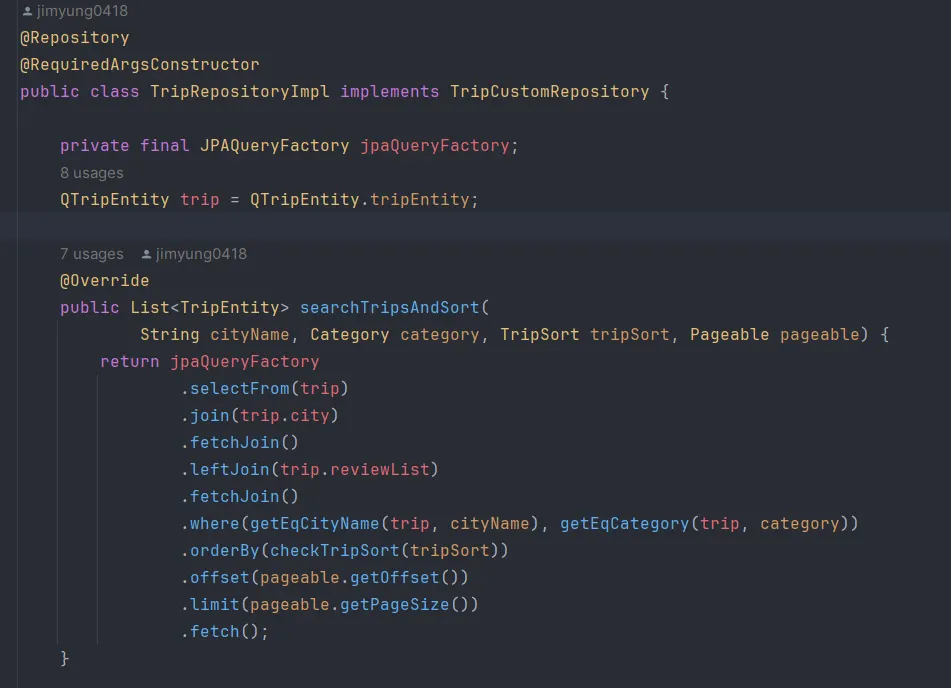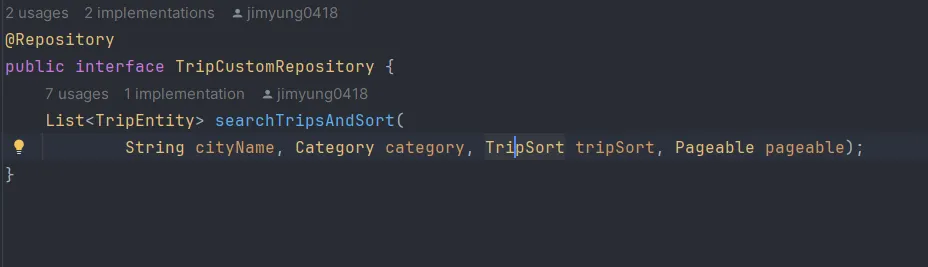 커스텀 인터페이스를 구현하는 클래스에 QueryDSL 쿼리를 작
