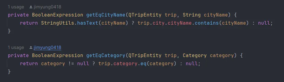 이러한 이유 때문에 BooleanBuilder보다는 BooleanExpression 사용이 권장된다.