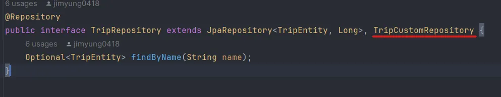JpaRepository를 상속하는 Repository가 커스텀 인터페이스를 상속하도록 설정