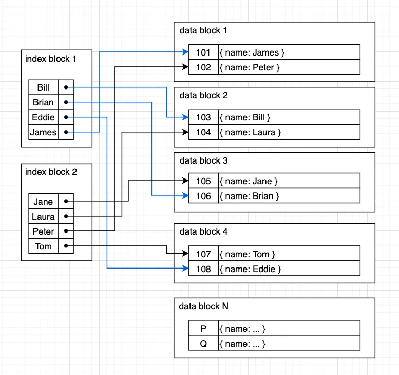 세컨더리 인덱스도 부가 설정 가능하여, 복합 인덱스 설정 가능