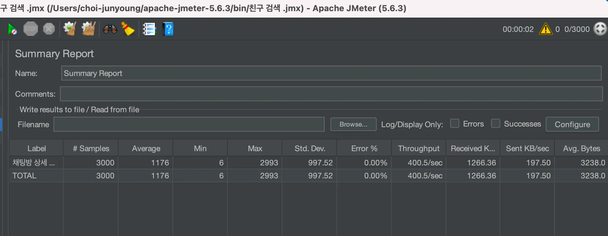 TPS(초당 데이터 처리량) 400.5/sec