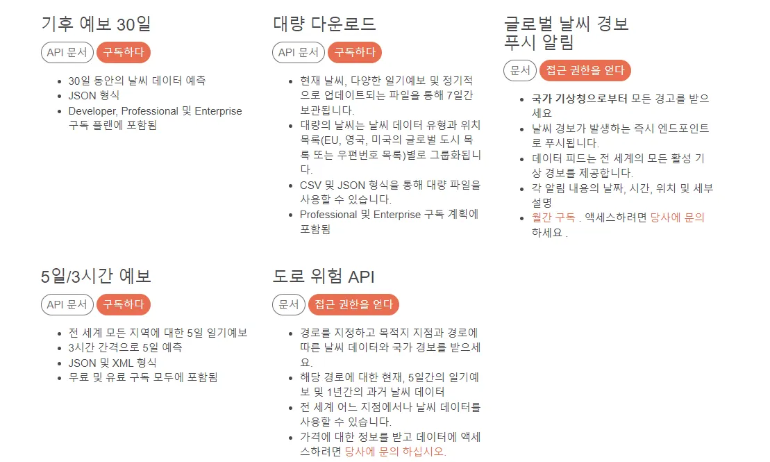 여러 API를 사용할수 있으나 무료버전과 유료버전이 있고 MyPaldoTrip 사이트에는 무료버전인 5일/3시간 예보를 사용했다.