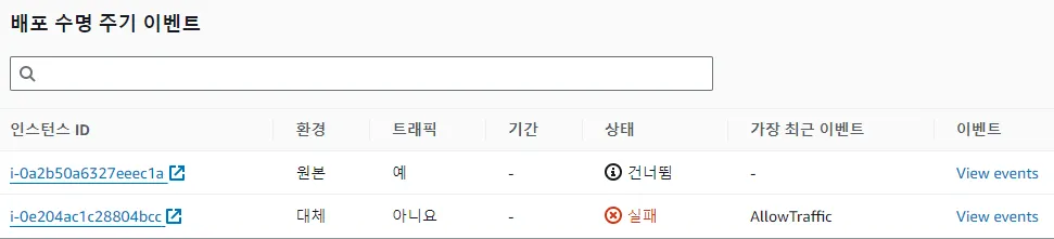 배포그룹의 원본 인스턴스 종료 (현재 5분)