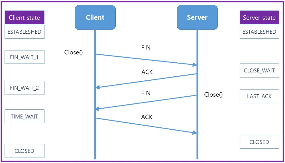 tcp๋ three-way handshake๋ก ์ฐ๊ฒฐ์ ๋งบ๊ณ four-way handshake๋ก ์ฐ๊ฒฐ์ ๋๋๋ค.