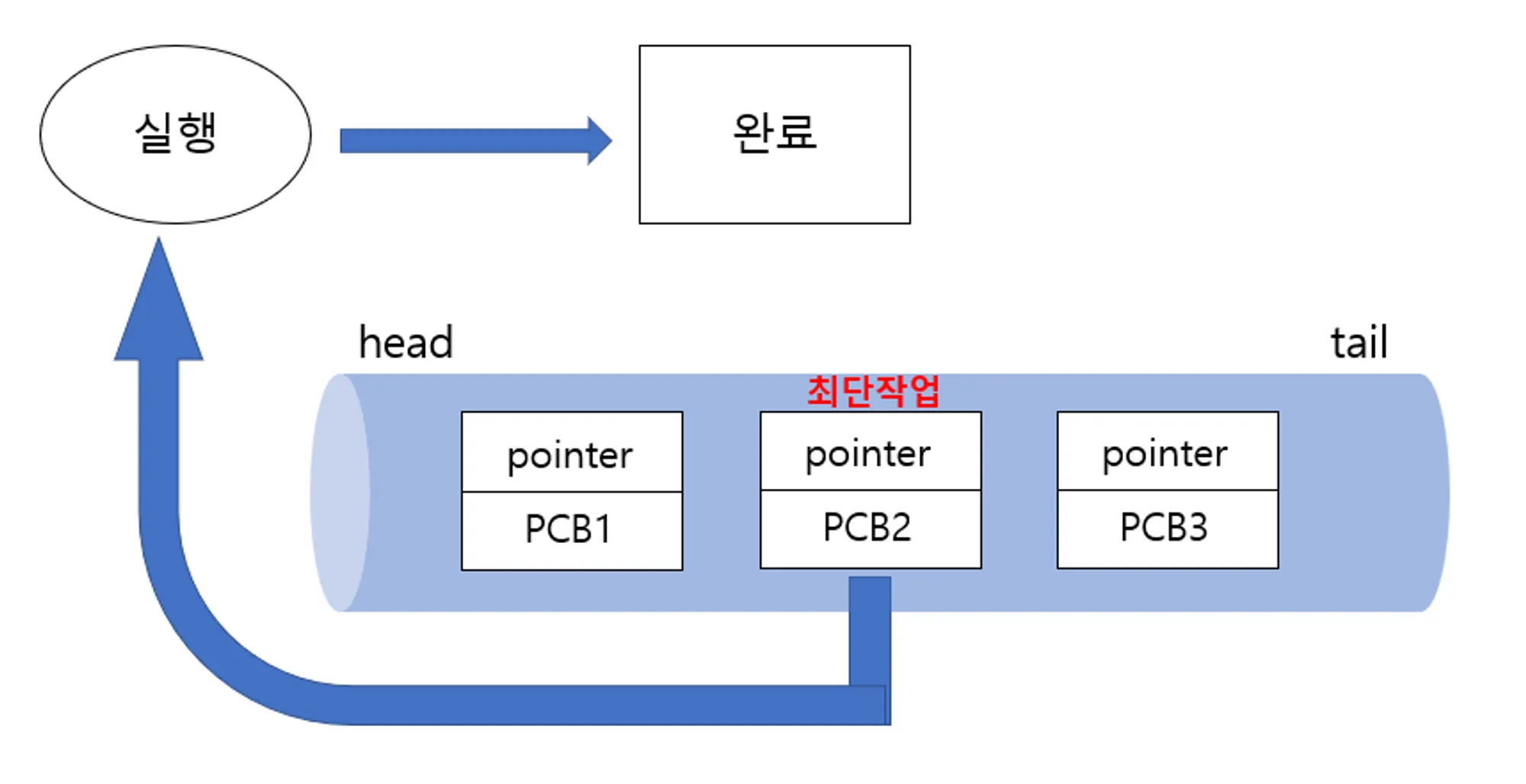 실행시간이 가장 짧은 프로세스를 가장 먼저 실행하는 알고리즘이다.