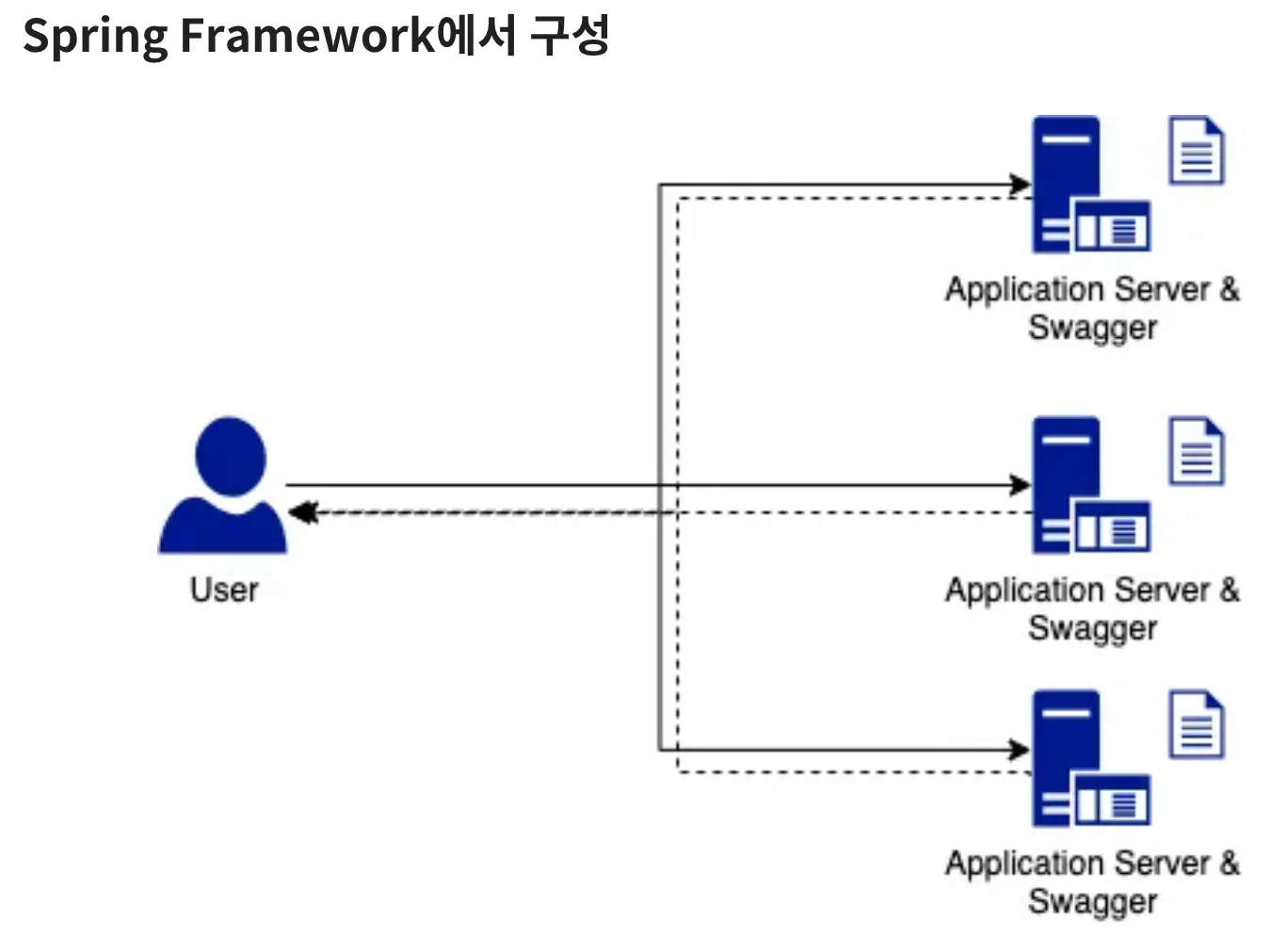 spring framework에서 구성한다면, 서버 자체가 Swagger 겸 백엔드 서버가 돼서 요청 및 응답을 처리하게 된다.