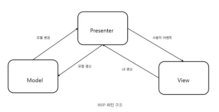 View와 Presenter는 일대일 관계이기 때문에 MVC패턴보다 더 강한 결합을 지닌 디자인 패턴이다.