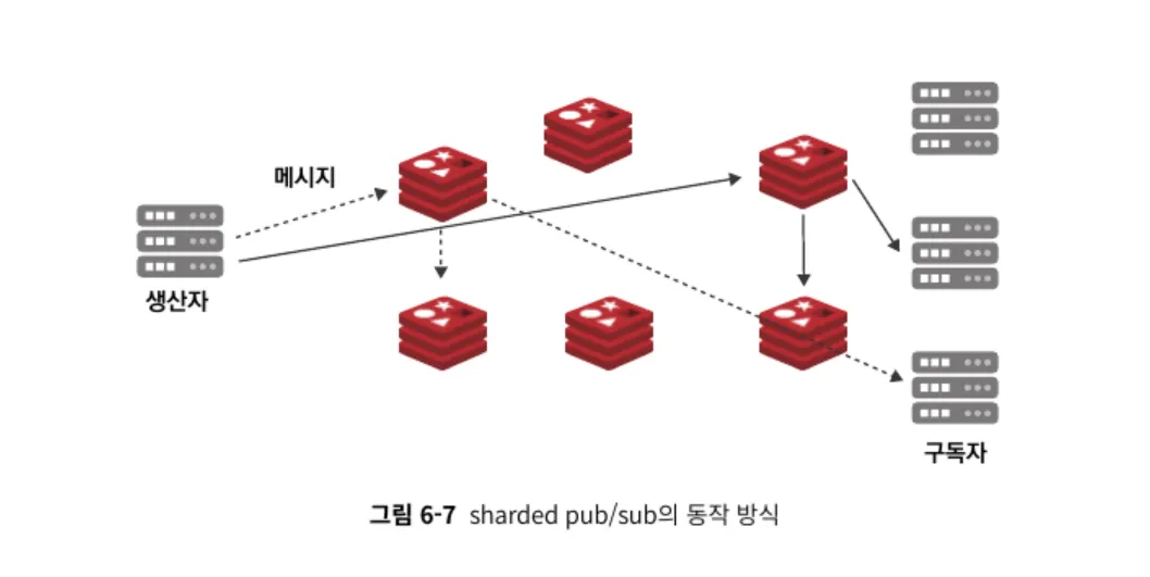sharded pub/sub을 이용한다면 클러스터 구조에서 pub/sub되는 메시지는 모든 노드로 전파되지 않기 때문에 불필요한 복제를 줄여 자원을 절약할 수 있다는 장점이 있다.