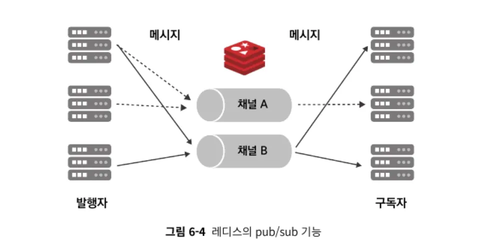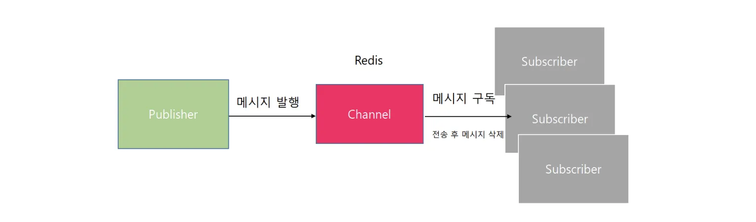 한 번 전파된 데이터는 Redis에 저장되지 않으며 위 그림과 같이 단순한 메시지의 통로 역할만 한다.