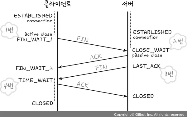 → 서버는 CLOSED상태, 클라이언트는 일정 시간 대기후 CLOSED상태