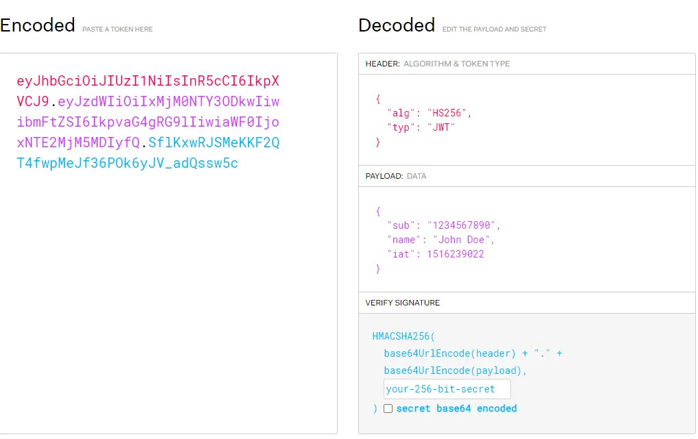 토큰이 탈취당하면 누구나 header, payload의 정보 확인 가능